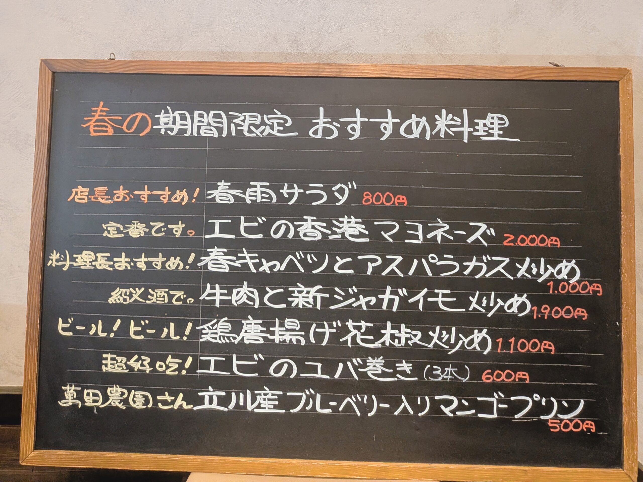 春の期間限定メニュー 中国料理 五十番 春雨サラダ 800円 海老の香港マヨネーズ 2000円 春キャベツとアスパラガスの炒め 1000円 牛肉と新じゃがいもの炒め 1900円 鶏の唐揚げ花山椒炒め 1100円 海老の湯葉揚げ 600円 立川産ブルーベリー入りマンゴープリン 500円 シェアしちゃう? 商品一覧へ 中国料理 五十番詳細へ